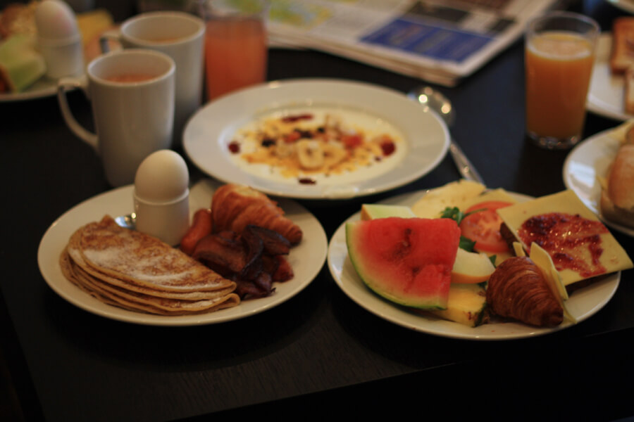 Det där ser verkligen jättegott ut! Men hur många pannkakor + mackor + croissants är det egentligen? Haha
