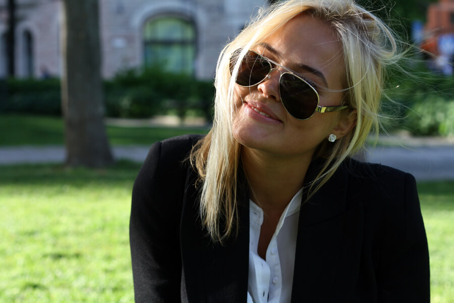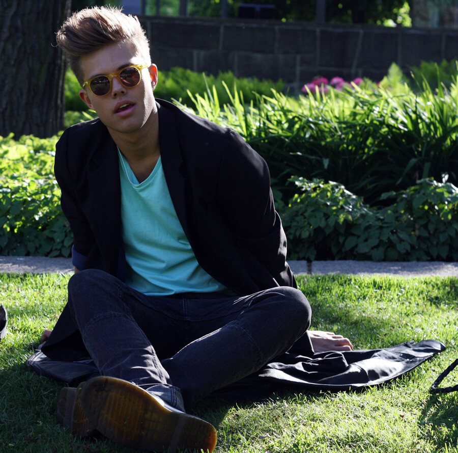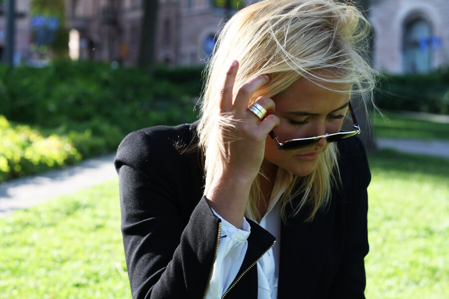 Jag har på mig kavaj från Acne, tröja från H&M, glasögon från E&E ,jeans från Weekday och Dr.Martens.