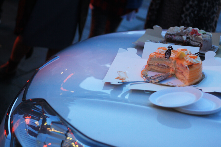 Kvällen avslutades med födelsedags firande på parkeringen.