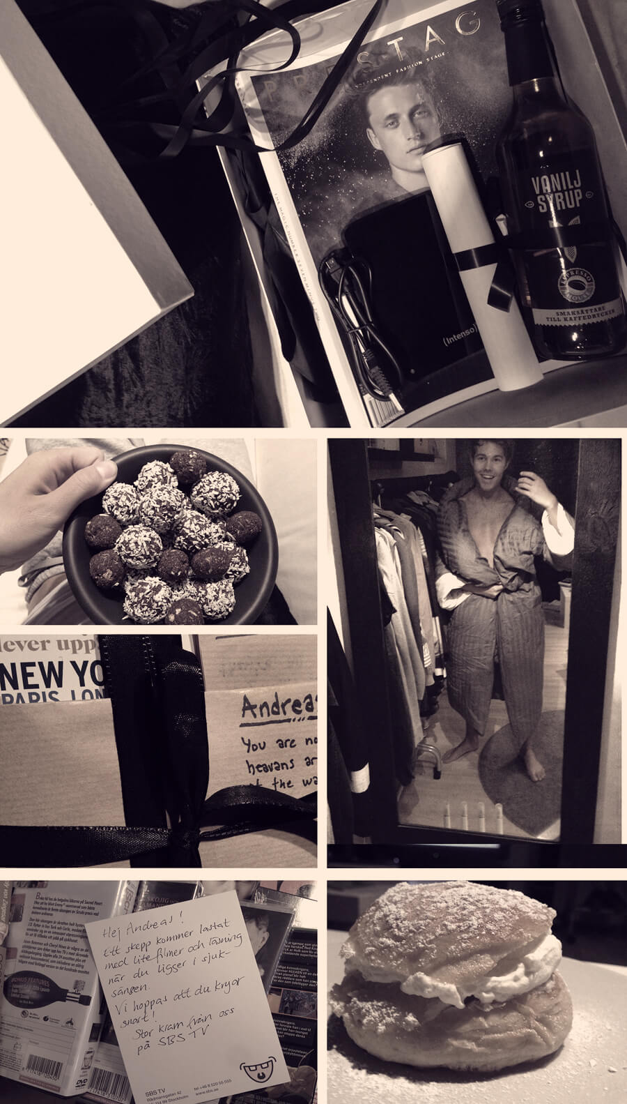 Min vecka hemma är snart över. De första dagarna var jobbiga, men idag har timmarna flugit iväg. Jag har blivit så grymt uppvaktad av mina vänner! Åh! Vilka människor man har omkring sig! Här ovan ser ni bilder från min vecka i soffan. Jag har faktiskt utan att överdriva spenderat 80% av min vakna tid just i soffan. Jag har traskat runt i mitt täcke från Martin Maison Margiela hela veckan! Täcke med armar! Kan det bli bättre?! haha