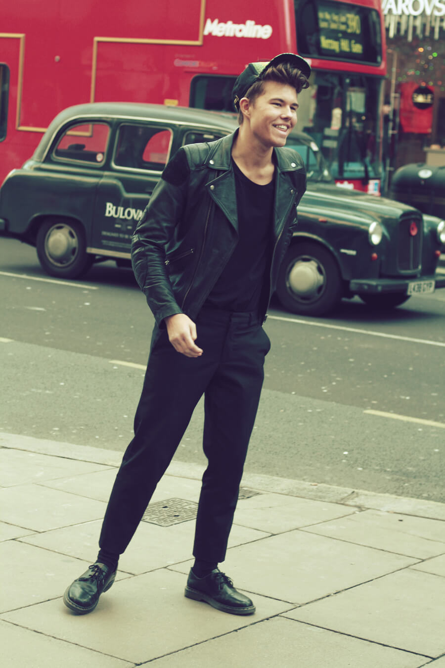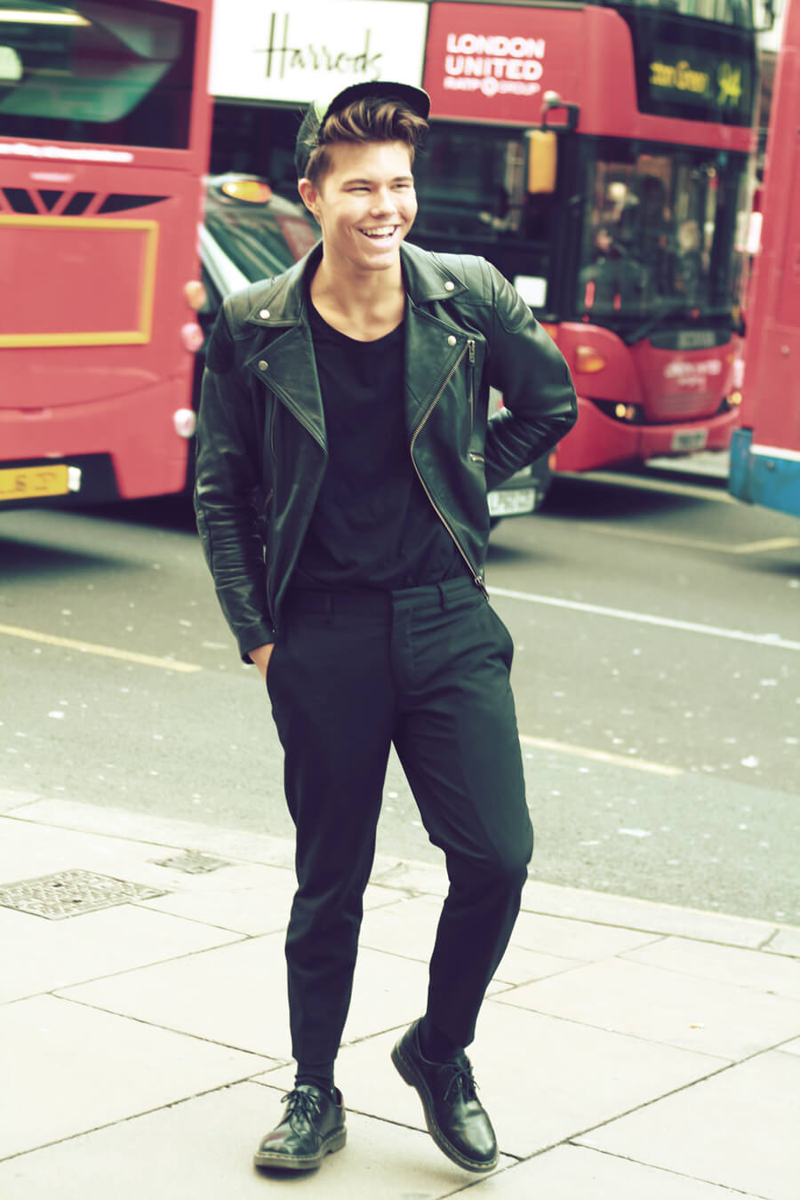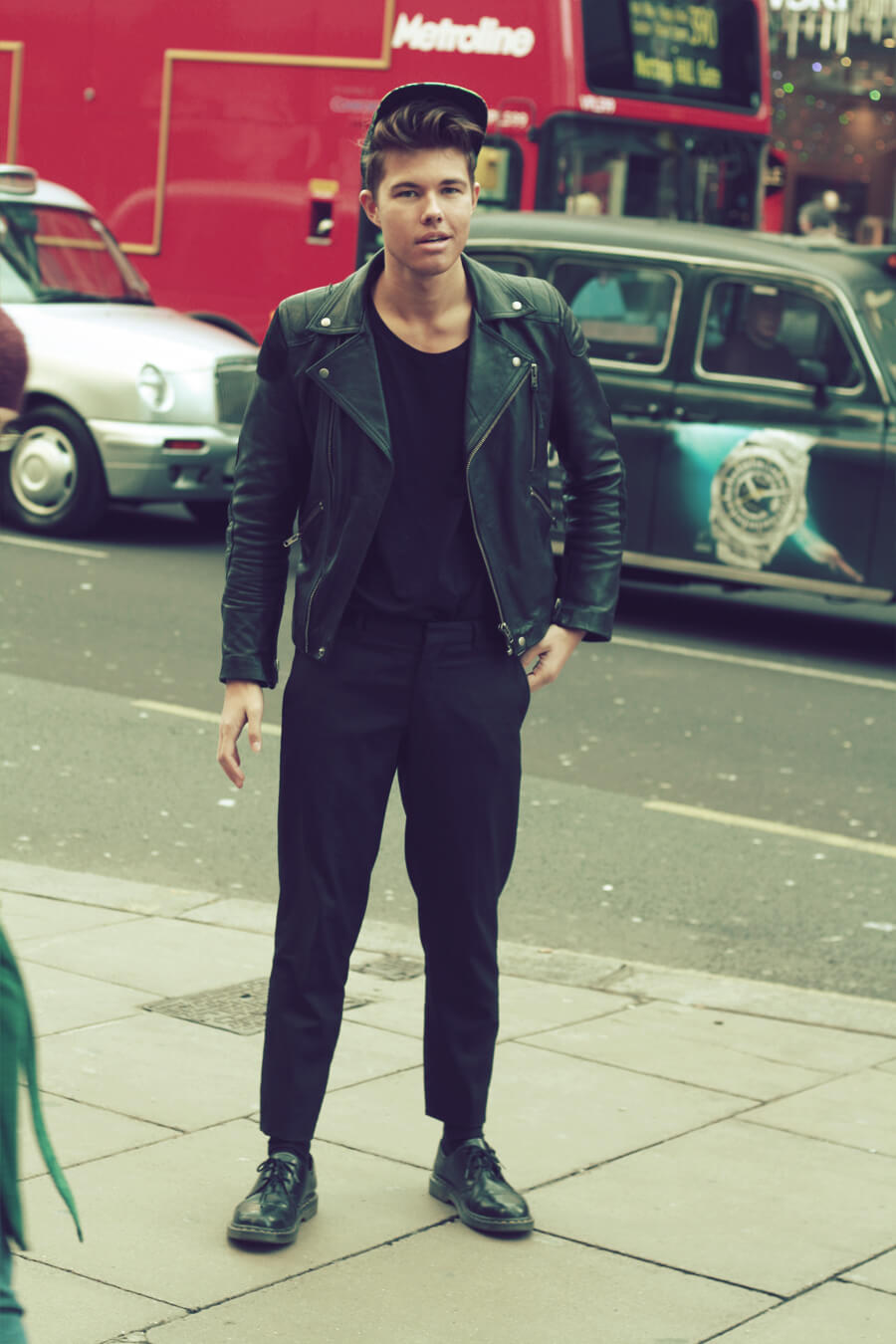 Kult, digger capsen! Og skinnjakka snakker for seg selv.