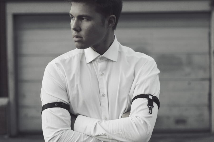 Skjortärmshållare . Gjort själv av nyckelband från Filippa K.