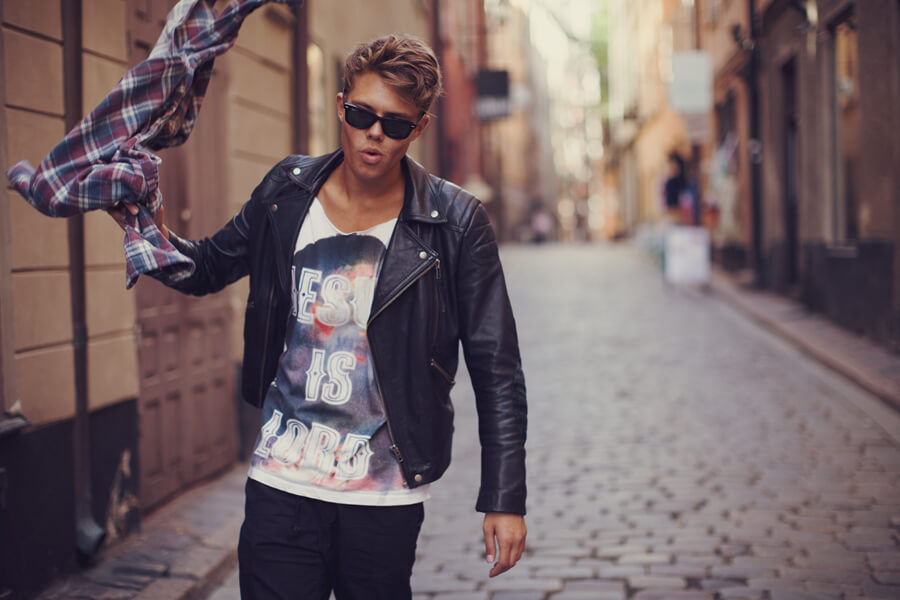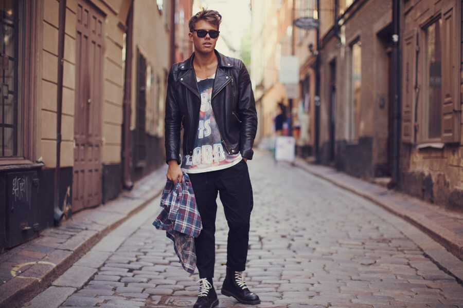 Hej! I really like your leather jacket parred with those shoes, it give it a nice trashy look in a good way. And your beautiful smile helps a lot tooooo haha, but i really like your blog though.