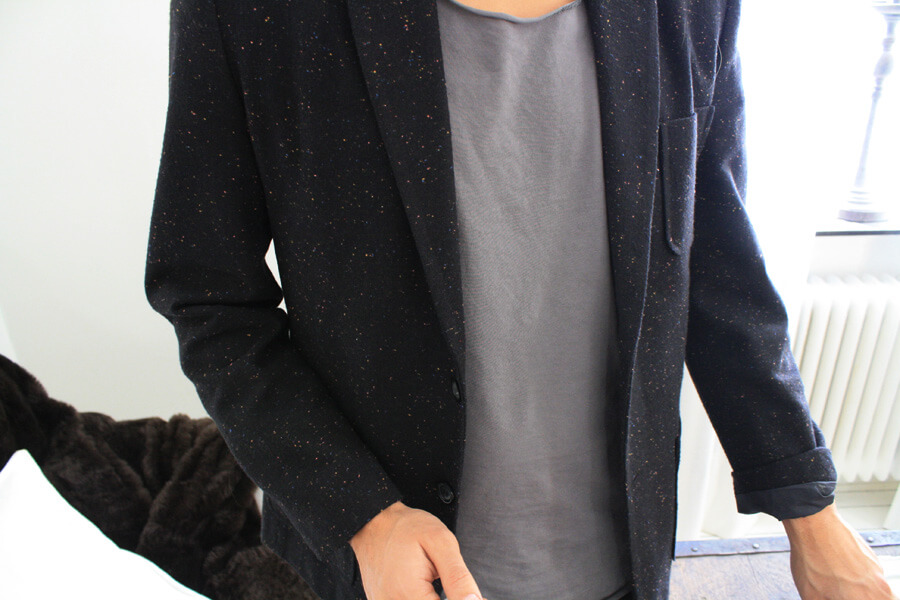 Gillar sista bilden med “kavajen” och grå tshirt.