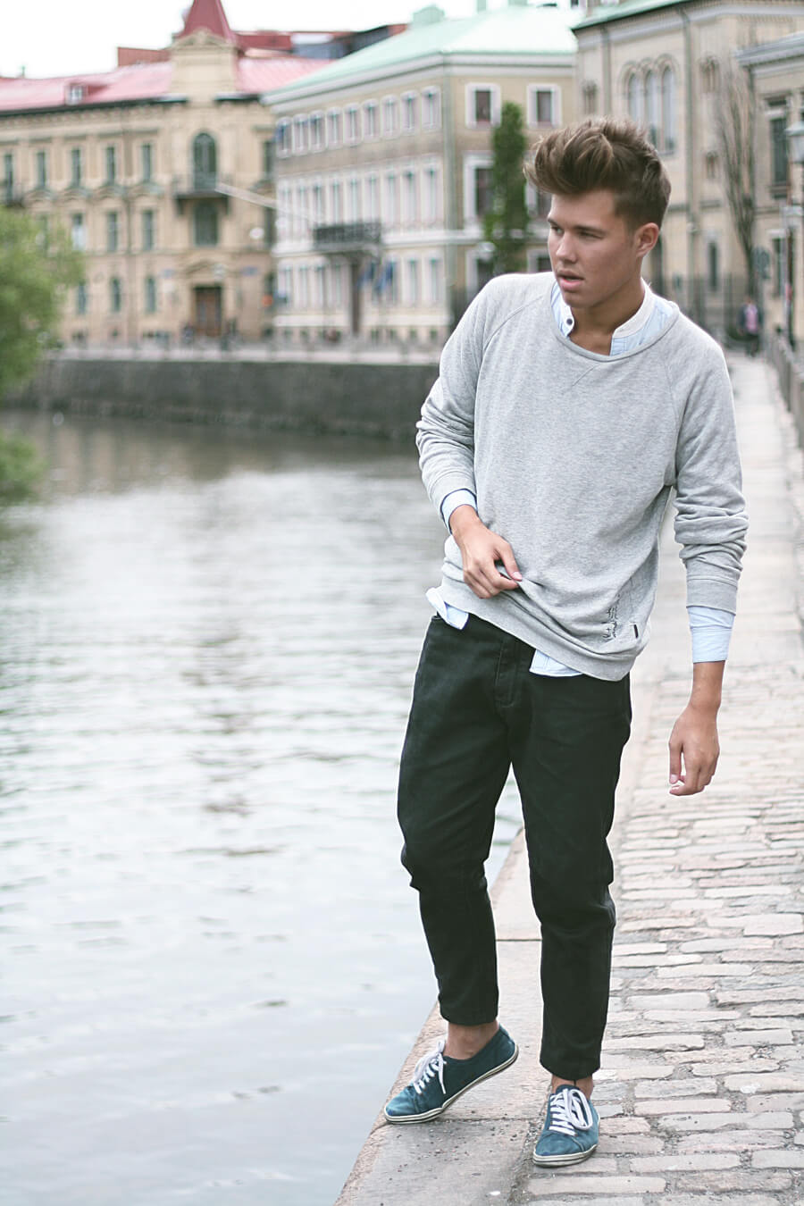 Hej, är storasyster på 17 vårar som försöker få min lillebror att bli intresserad av kläder/mode. Något tips på vilka butiker jag ska ta honom till? Och vad som är vårens måsten? Kram